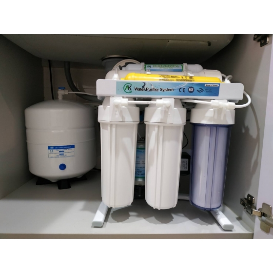 其可98%過濾水中有害物質,保留水中有益礦物質,就算有其他不明的汙染物都可以完全過濾,確保100%安全飲用水與健康安全。 立式鐵架,更換方便。